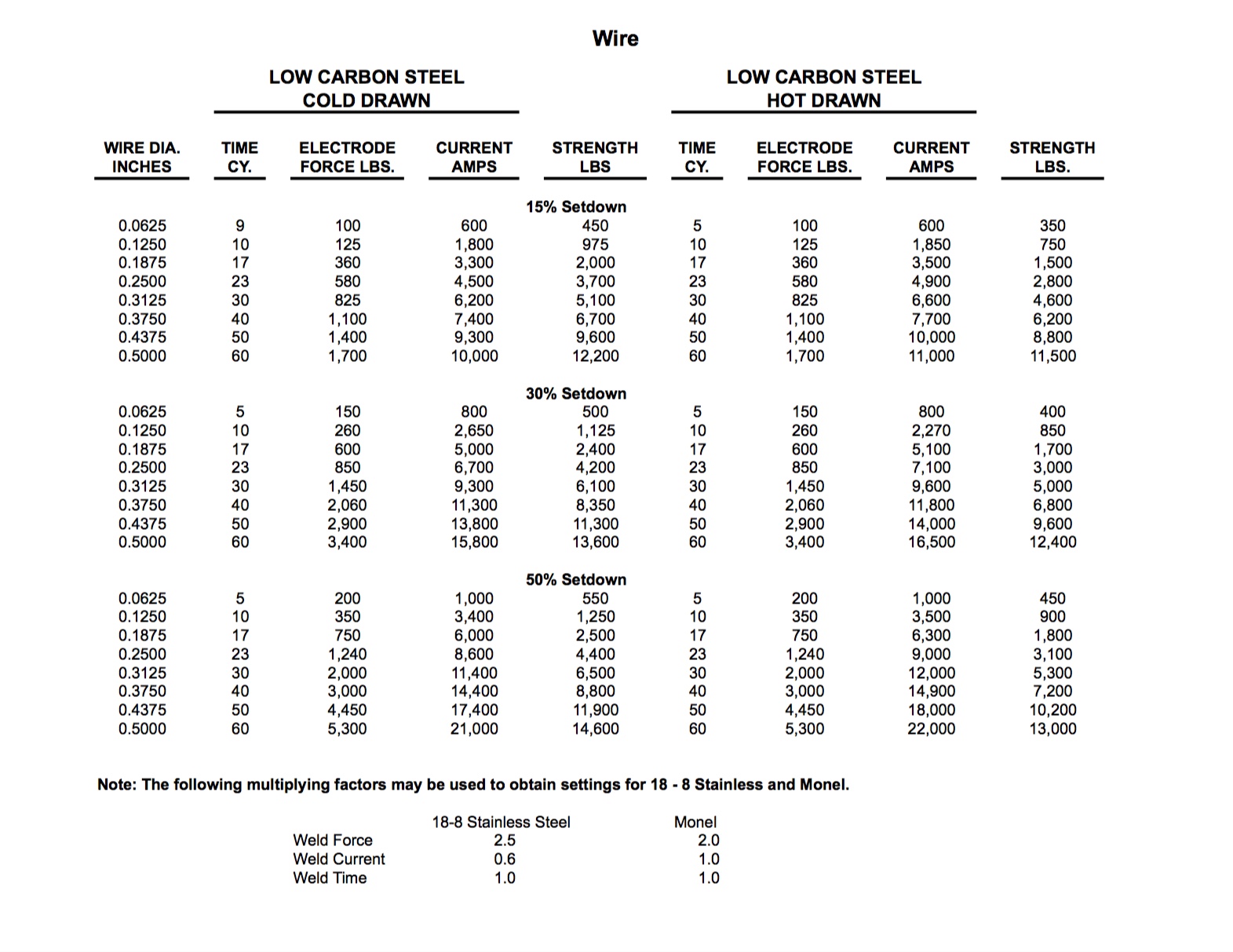 Low carbon steel spot welding data chart—single impulse welding. Low carbon steel as hot rolled, pickled, and slightly oiled with an ultimate . Pw also offers technical advice and consultancy on all resistance welding related matters. Testing spot weld strength can be difficult. Do's and don'ts for resistance. Materials to be welded (melting. Section 3 − fundamentals of resistance spot welding. Colours) are published against original welding chart to confirm the accuracy of the formulas. Spot welding parameters basic calculation = 0.241 w. Low carbon steel spot welding data chart—single impulse welding. Vary from weld to weld, and it is very difficult to set conditions in chart form for the material. Balance the thermal mass of the parts to be welded. Vehicle manufacturers use resistance spot welding in the factory because they can produce high quality welds at a very low cost.